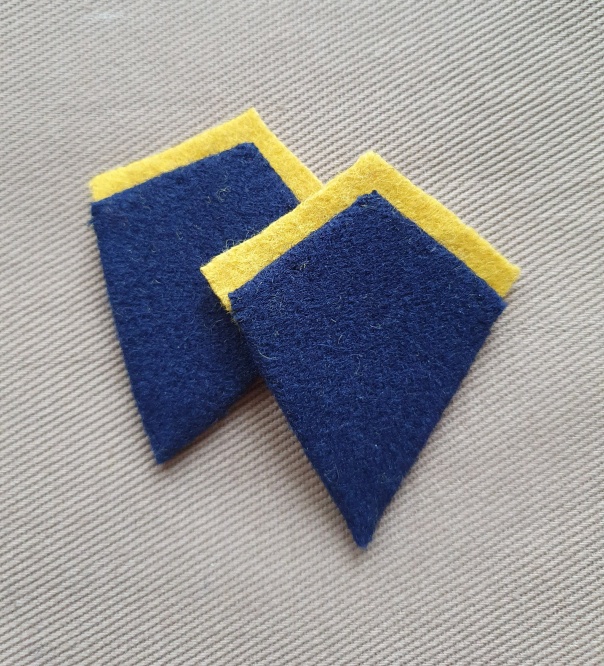 Patki piechoty na battledress wykonane zgodnie z regulaminem, granatowe sukno, żółta wypustka.